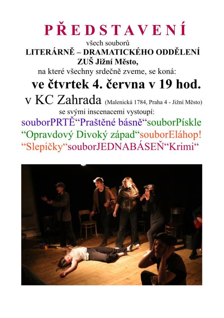 Takto probíhala vernisáž výstavy prací žáků a studentů výtvarného oddělení ZUŠ Jižní Město a pozvaných ZŠ z Prahy 11 s názvem „Čáry, čmáry, malování XIII.“ v kulturním centru Zahrada dne 1. 4. 2026. Za krásná díla děkujeme všem výtvarníkům, za taneční a hudební doprovod pak souborům z naší školy. Výstavu v KC Zahrada je stále