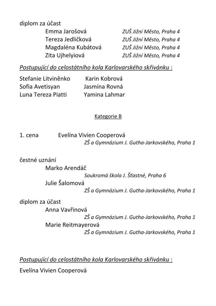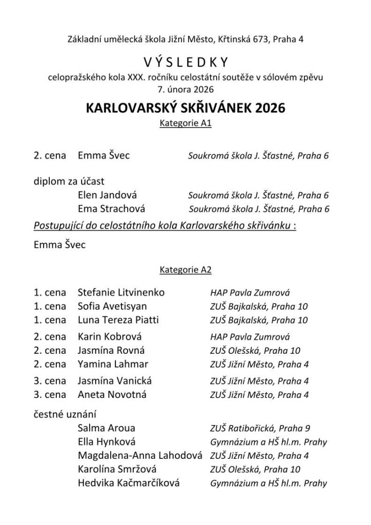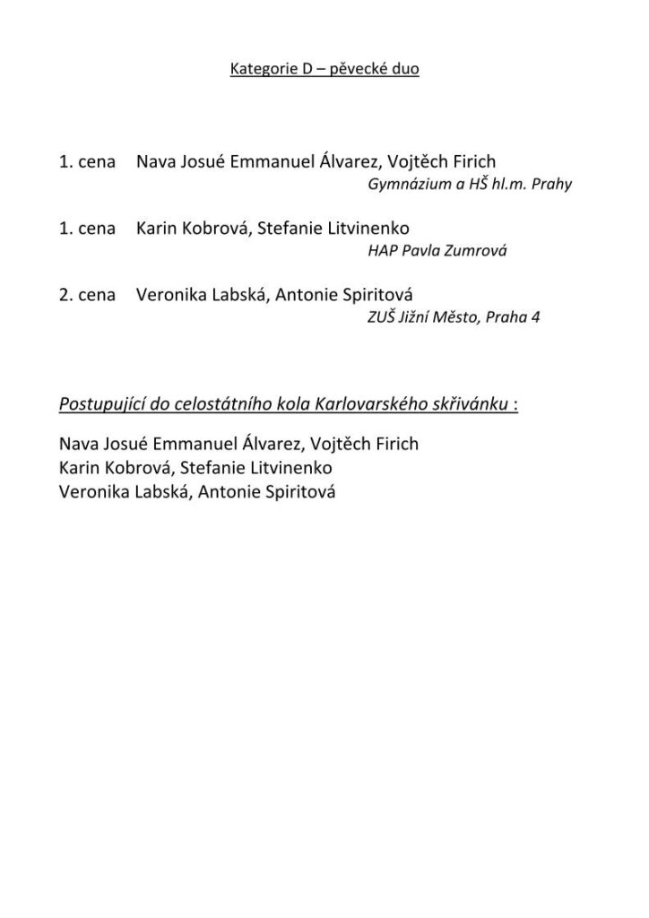 Děkujeme účinkujícím za účast a porotě za krásné ceny. Postupujícím do celostátního kola držíme palce.